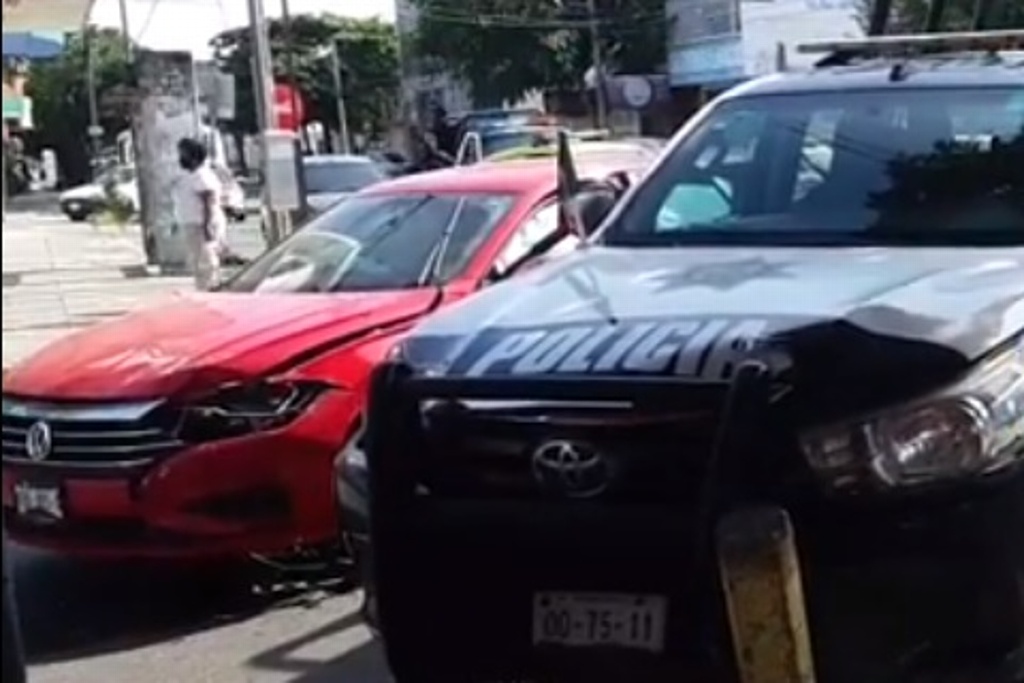 La tarde de este jueves se registró un choque entre una patrulla de la Policía Estatal y un auto particular en calles de la colonia Zaragoza, en Veracruz; hay dos lesionados.