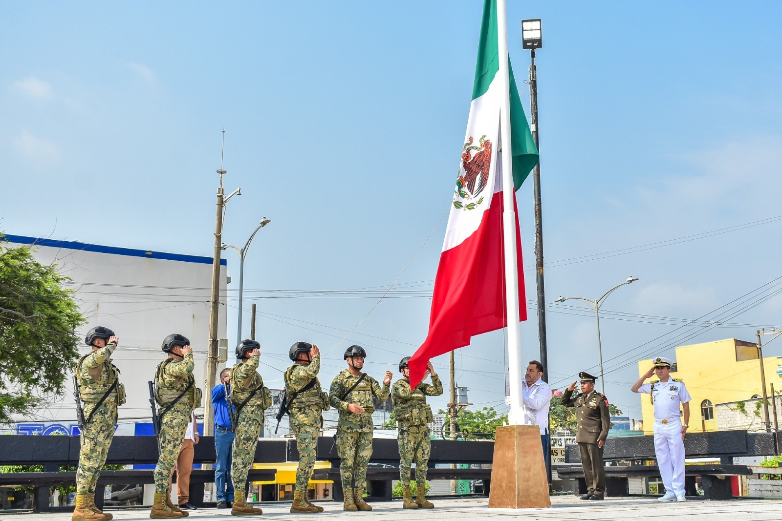 Acompañado del Capitán de Navío, Jorge Luis Heredia Bustamante y del comandante del 44 Batallón de Infantería, Obdulio Jacinto Villegas, el edil porteño izó la bandera a toda asta y rindió honores al lábaro patrio, con la participación de la escolta de la Séptima Zona Naval.
